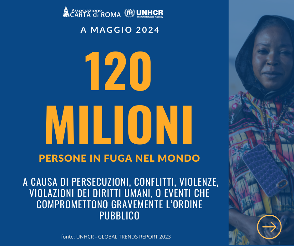 Il numero complessivo delle persone in fuga nel mondo sale a 120 milioni a maggio 2024, in crescita per il dodicesimo anno consecutivo e riflette sia i nuovi conflitti e quelli che mutano, sia l’incapacità di risolvere le crisi di vecchia data. La popolazione globale in fuga equivarrebbe a quella del dodicesimo Paese al mondo per ampiezza della popolazione, quasi come quella del Giappone.